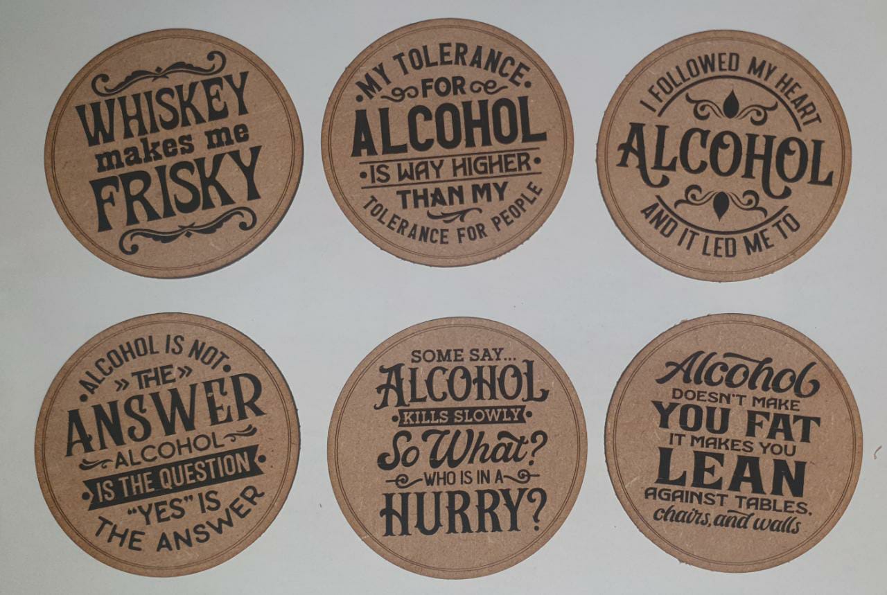 Bar Coaster set with Alcohol Quotes on