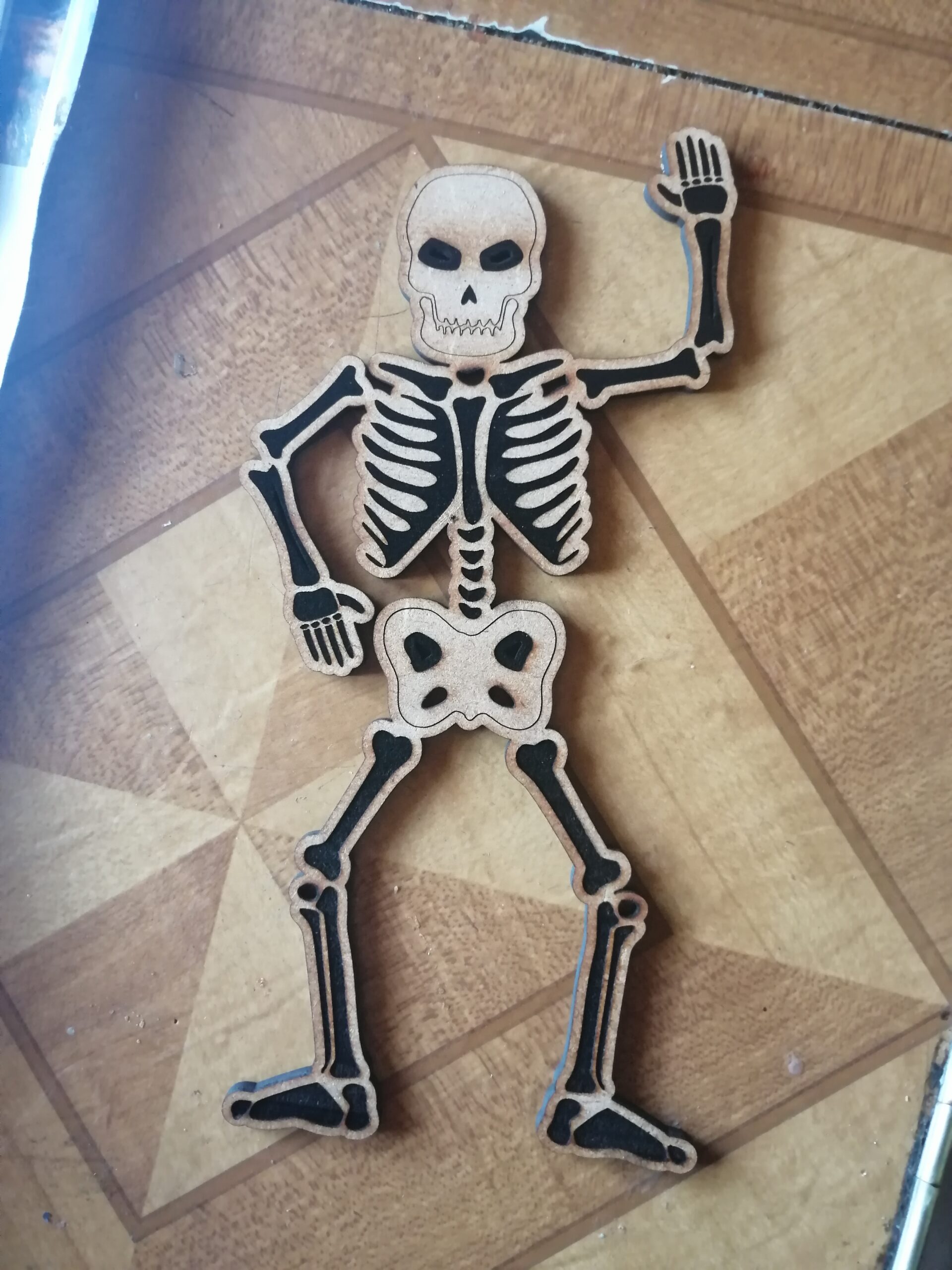 Introducing our Dancing Skeleton, a captivating decorative piece measuring 19cm in height. Crafted with precision, this skeleton is meticulously laser cut from high-quality 3mm MDF (Medium Density Fibreboard), ensuring durability and detailed intricacy.
