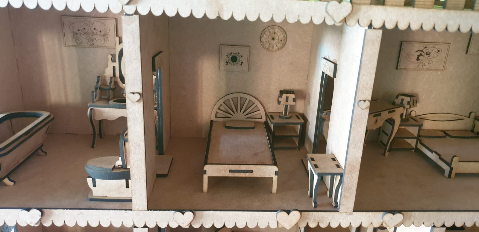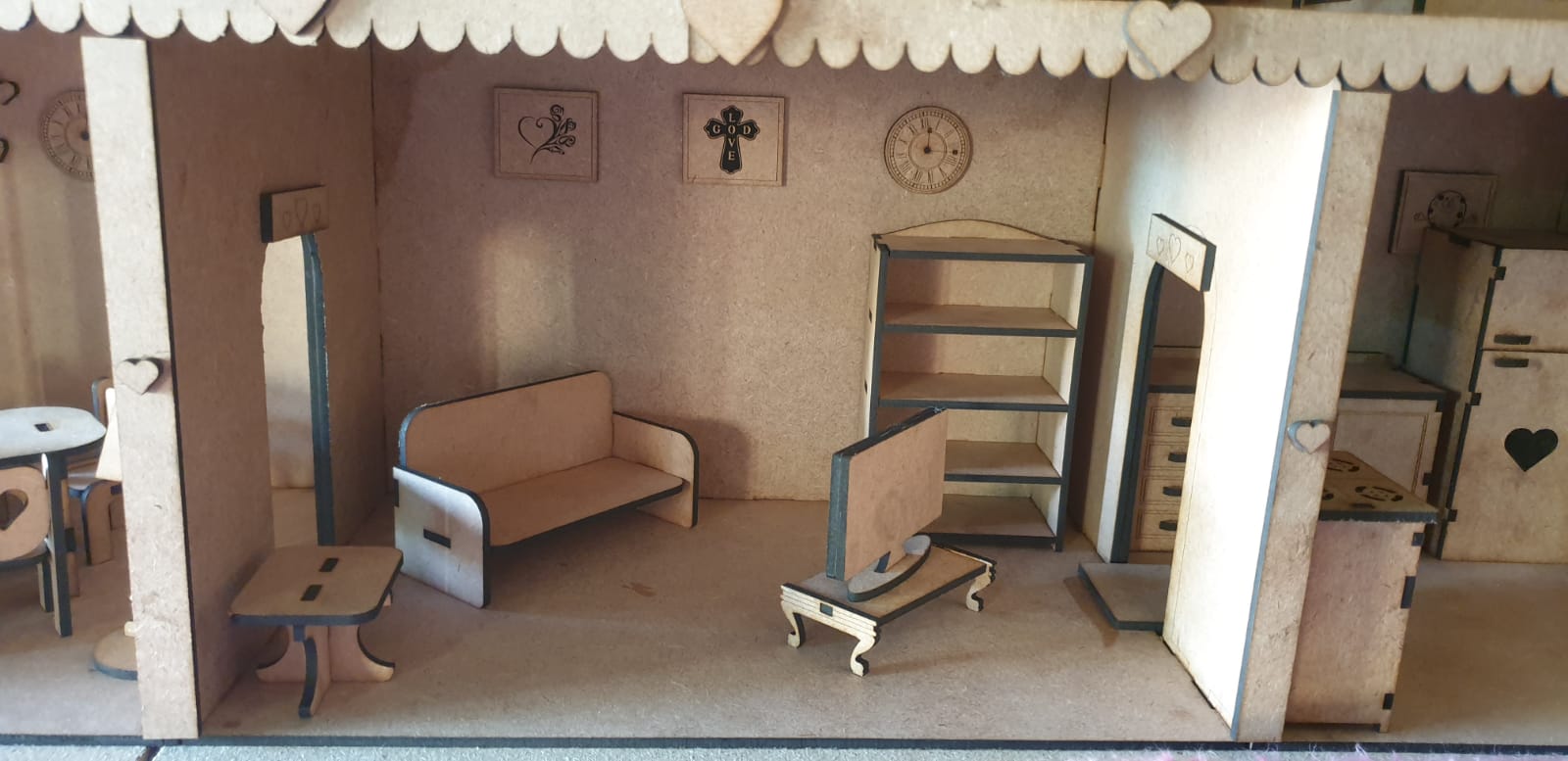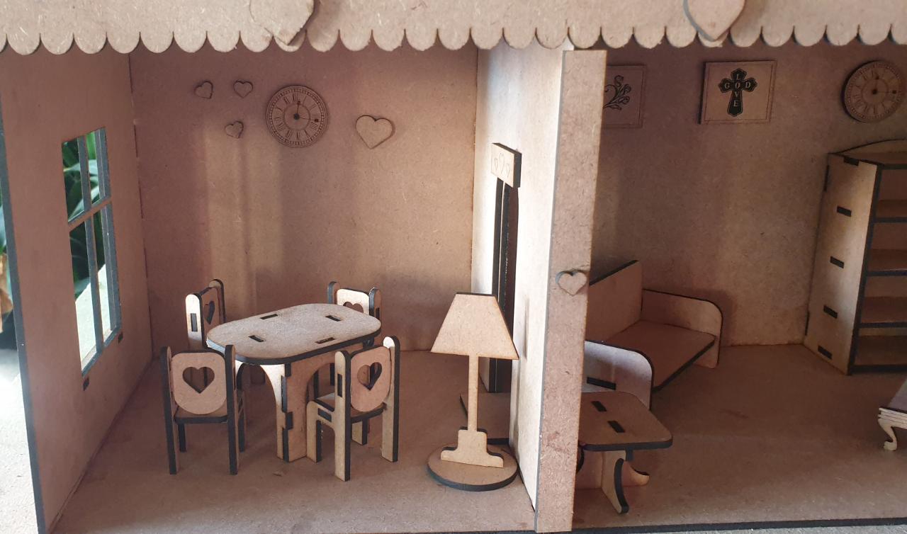 2. Miniature Furniture: Our dollhouse comes complete with meticulously crafted miniature furniture for each room, adding realism and charm to every corner. From tiny beds and sofas to delicate dining sets, each piece is crafted with care.